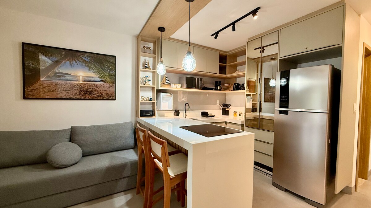 Um Flat com tudo o que você precisa para tirar um descanso sem preocupações. Todo mobiliado e de fácil acesso ao centro, o local é estratégico, ao lado do ponto dos transportes para as ilhas de Moreré, praia da Cueira, entre outras.