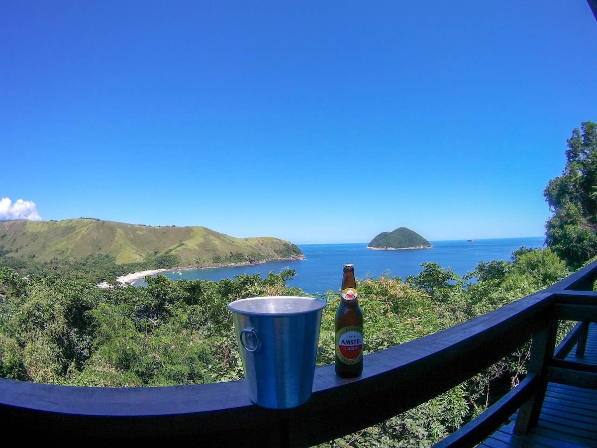 Chalé com vista e a 1 minuto de 2 praias