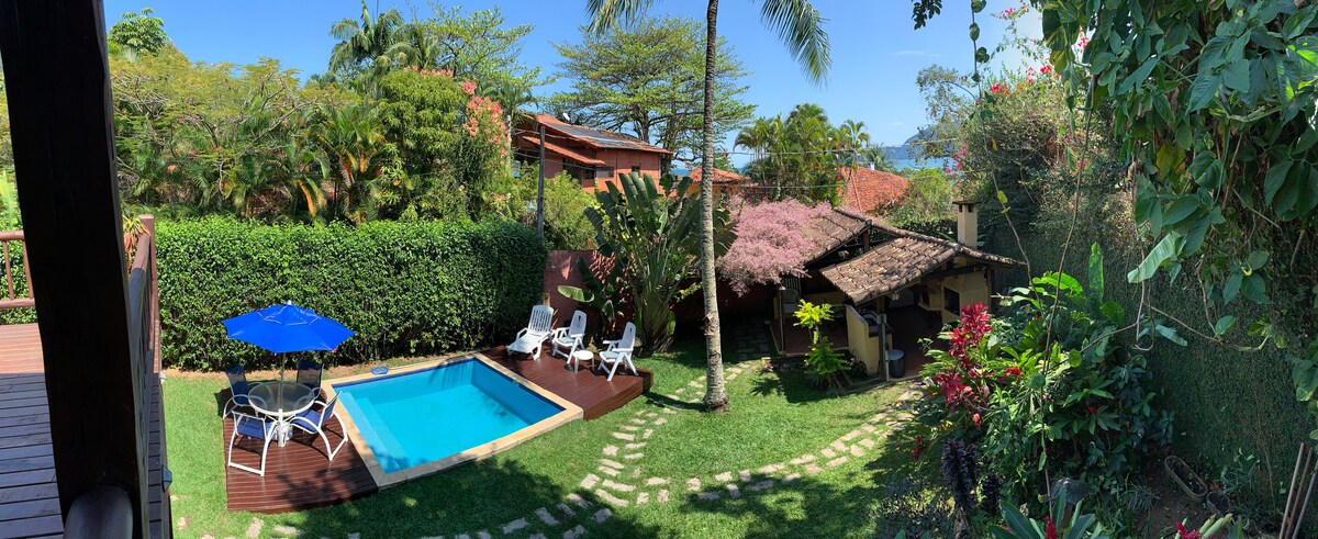 Házunk a kényelmet és a szépséget ötvözi az általunk annyira szeretett caiçara stílusban. Tágas szobák, légkondicionált nappali és hálószobák, valamint gyönyörű, jól megvilágított fürdőszobák. A kertben az erdőbe épített, valódi menedékhely található, ahol számos növény és gyümölcsfa vonzza a madarakat, valamint egy tiszta patak folyik közvetlenül az ingatlan mögött. A teljes zárt tér háziállatok számára is ideális. Teljesen felszerelt konyha, grillezőhely és parkolóhely egy biztonságos és felügyelt utcában. Gyere, és élvezd a paradicsomnak ezt a kis szegletét!