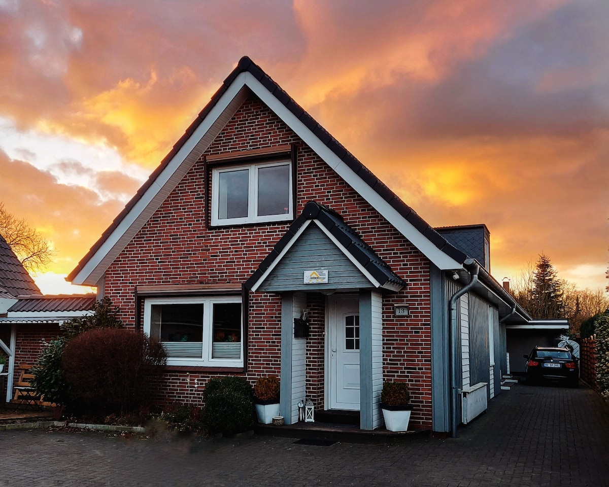 Németország legszűkebb pontján található ez a gyöngyszem, amely egy 180 éves zsúpfedeles Geestlanghaus, csendes, eldugott helyen, ingyenes parkolással, 10 percre az A7-es autópályától. Fiatal párok kisgyerekkel, egyedül utazók, északra vagy délre tartó turisták, elvonulásra vágyó festők, zongoristák (zongora is van!), írók és más kreatívok, madárbarátok és a tenger szerelmesei szívesen látjuk kicsi galériánkban!