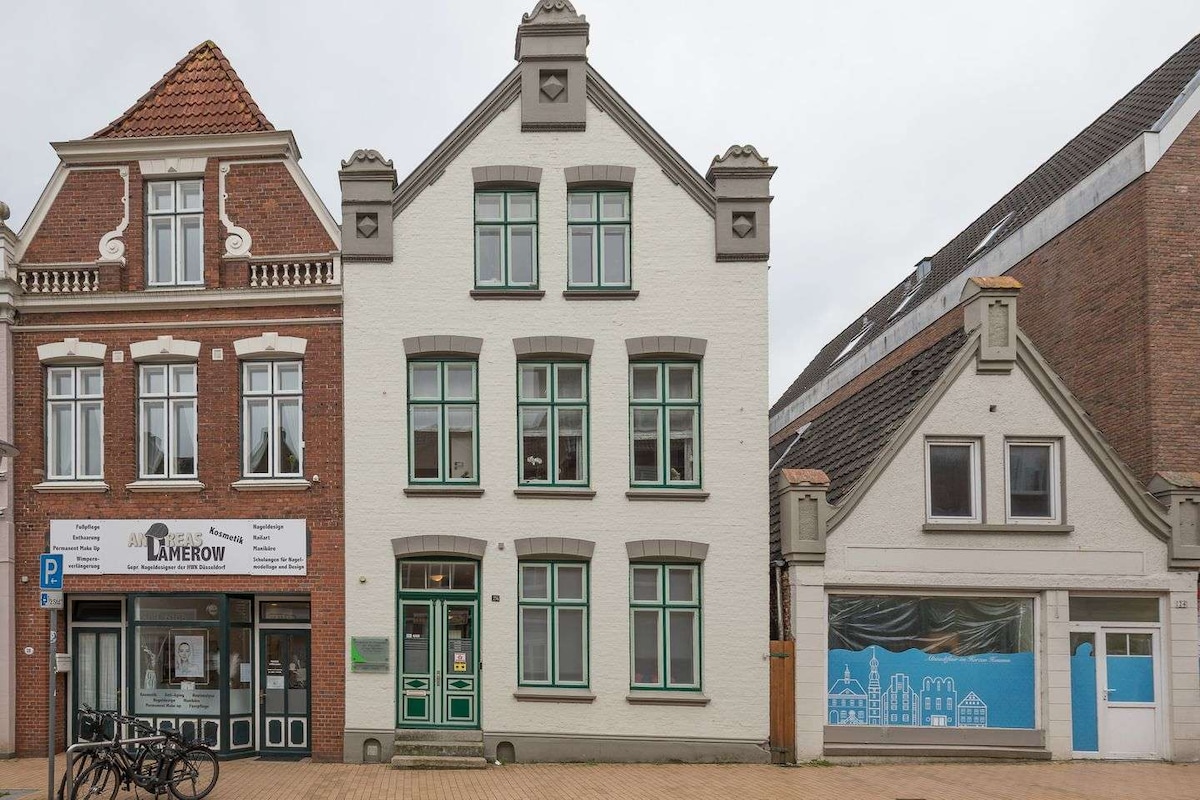 A közvetlenül Theodor Storm város központjában található a világos, tágas tetőtéri lakás, az „Unter den Sternen”. Itt nagyon közel laksz az észak-fríz csillagokhoz egy nappaliban/hálószobában, kétszemélyes ággyal,kanapéval, karosszékekkel,íróasztallal és tévével, konyha étkezőasztallal. Az alsó szinten elüldögélhetsz az udvaron, ahol grillezhetsz és elidőzhetsz szürke időben. A közeli városnéző éttermek, kávézók és üzletek kellemesebbé teszik ezt a nyaralási bázist.