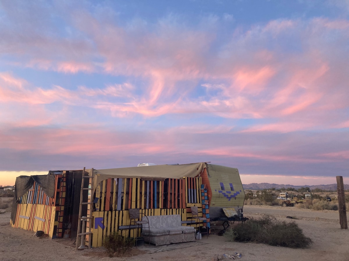 Önálló sivatagi táborhely Slab Cityben, Kaliforniában