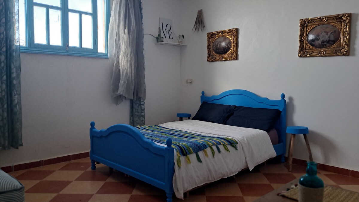 Üdvözlünk az Omar 's Surf Shackben, a Tamraght szívében található közös vendégházban, amely a szörfözés gazdag történelmével átitatott város szívében található. Merülj el az élénk helyi kultúrában, amelyet egy barátságos család kezel, akik szívesen osztják meg a hagyományaikat. Válassz a közös és privát szobák között, közös fürdőszobával és jól felszerelt konyhával. A csúcspont a tetőteraszunk, ahonnan lélegzetelállító kilátás nyílik a városra és a tengerre.