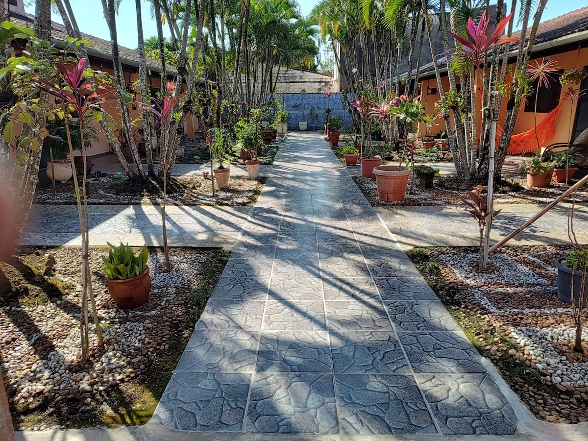 Imagine uma acomodação única, situada em meio a natureza. Esta casa possui uma sala, dois quartos aconchegantes e uma cozinha totalmente equipada, permitindo que os hospedes preparem suas refeições com muita facilidade e qualidade, além de tudo isso, tem um quintal para lazer e para preparar um bom churrasco. Para completar essa acomodação, fica apenas 550 metros da praia 7 minutos de caminhada, é um refúgio perfeito para quem busca tranquilidade e renovação.