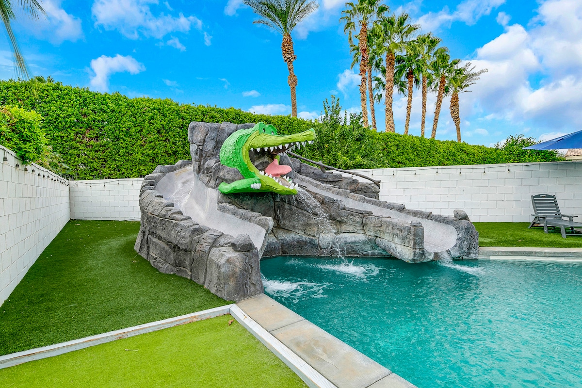 Menekülj a Casa Marigoldba, egy modern sivatagi szálláshelyre stílusos dizájnnal és üdülőhelyi kényelmi szolgáltatásokkal. Pihenj a sós vizű medencében, a gyógyfürdőben vagy a Baja-szirten egy ital társaságában. Gyűljetek össze az étkező teraszon, vagy élvezzétek a színes esti fények ragyogását. Belül egy séfkonyha, boltíves mennyezet és kandalló teremt kényelmet, míg a privát hálószobák okostévével és gyógyfürdő ihlette fürdőkkel teszik kényeztetővé a szálláshelyet. Nagyon közel mindenhez, amit a Coachella-völgy kínál!