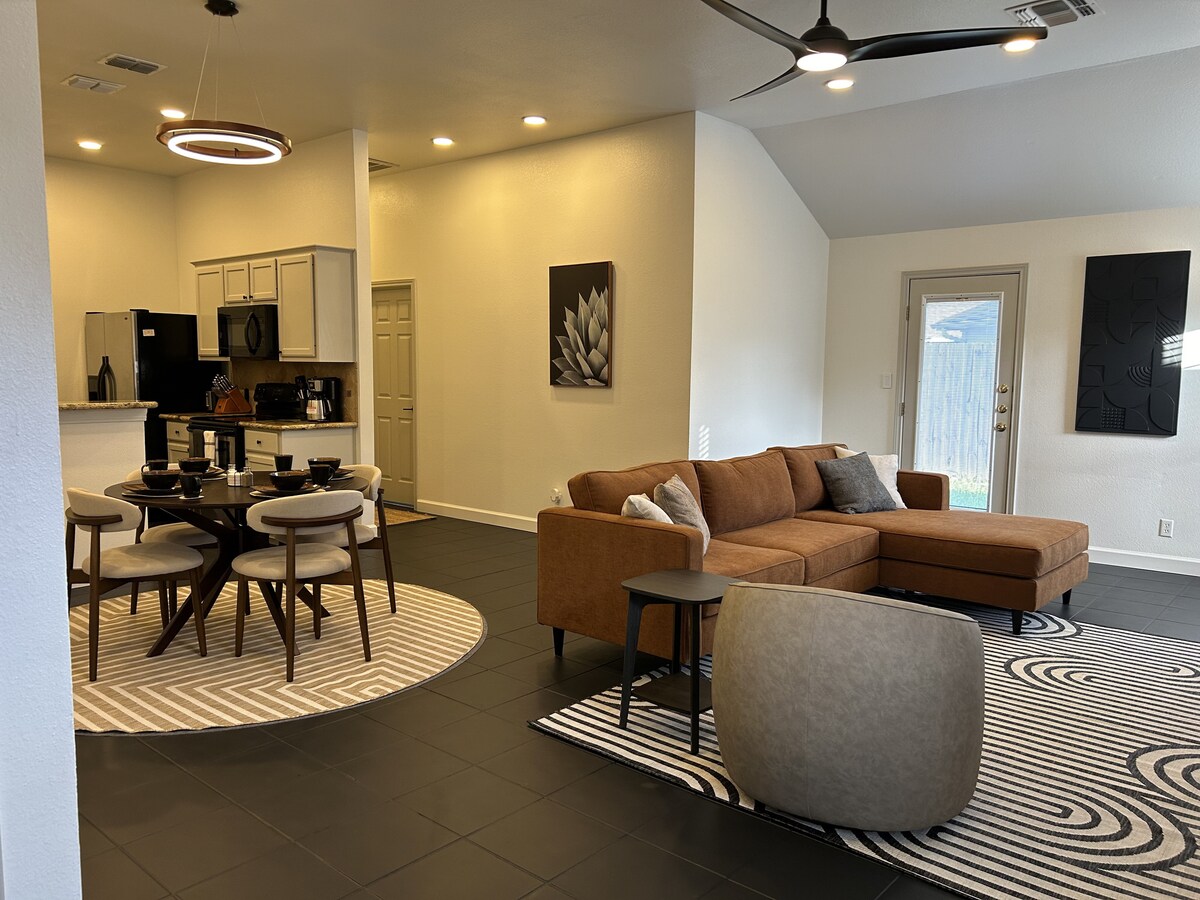 Located on a quiet street surrounded by large live oaks, our cozy house is a few minutes away from a coffeeshop, Walmart, and many other restaurants and businesses. Let us make it feel like home! We offer fresh roasted coffee and a kitchen stocked with utensils, as well as a washer & dryer. Relax on a rocking chair on the back porch when you arrive and unwind! There are no checkout requirements so you can focus on your day when you are ready to leave. Message us about discounts on monthly stays