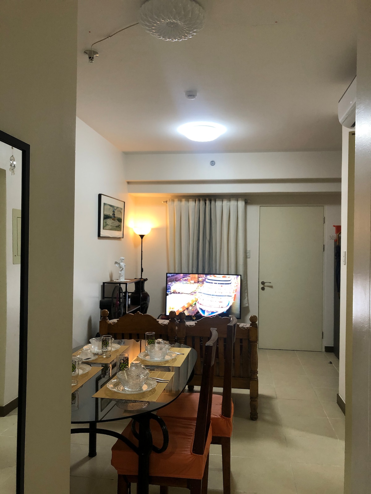 Relax with the whole family at this peaceful place to stay Bedroom Double size bed with Foam Mattress 4 large pillows 1 comforter + linen Smart Tv with Netflix Wifi Side table Aircondition Living/Dining Sofa 2-seater Dining table and chair Refrigerator Microwave oven Induction cooker Rice cooker Kettle Pot Mugs / plates / spoon&fork Trash Can 2-Mirror Bathroom Bidet Mirror Sink Water heater Shower telephone Trash Can One-time set up and freebie 2bottled water 1tissue roll SELF CHECK-IN