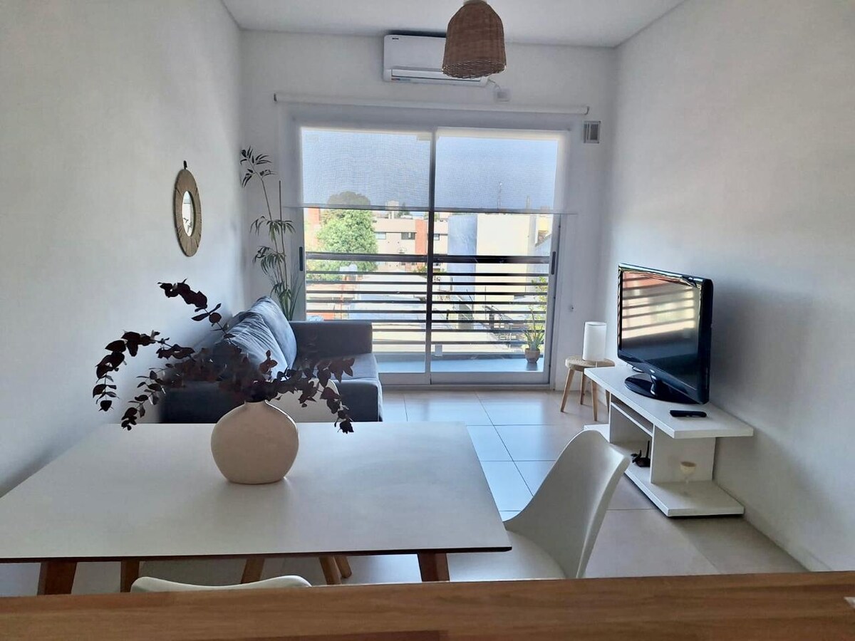 Exkluzív egykörnyezet La Plata városában. Ideális a pihenéshez egy csendes, modern és stílusosan berendezett helyen! Mindennel fel van szerelve, ami egy felejthetetlen foglaláshoz szükséges! Az Avenida 38-on található, közel az Estadio Único Ciudad de La Plata-hoz, az Español kórházhoz, zöldterületekhez, például a város parkjaihoz, és tíz percre a Buenos Aires- La Plata autópályától. Csendes lakóövezet, könnyen parkolhatsz.