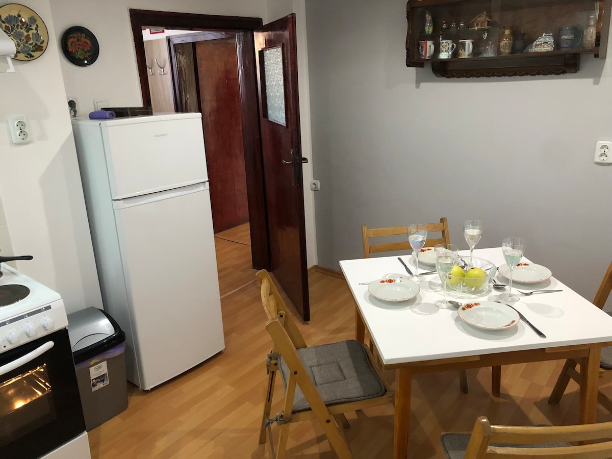 This stylish, extremely spacious and bright place is ideal for group visits, business trips and vacations with your partner or family alike. You will have a huge and fully renovated apartment at your disposal with every detail made with extra care and love as if it is your own home, with all amenities you can think of. We are conveniently placed mere 10 mins from Sofia airport and city center (by taxi or bus), with lots of shops, restaurants and one of the biggest malls nearby.