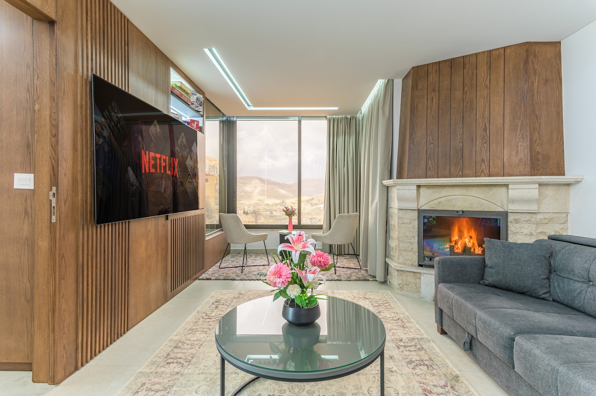 Welcome to Alto Faqra — a luxurious mountain villa offering a five-star experience with stunning views of the Faqra ski slopes. Just three minute from the lifts, this modern retreat combines comfort and style with spacious living areas, a cozy fireplace, and breathtaking panoramic scenery — perfect for an unforgettable mountain escape