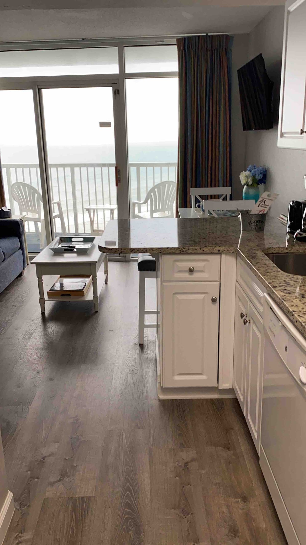 I am a proud to be a **SUPERHOST!** - Airbnb's TOP HOST Rating! This beautiful condo has been stylishly decorated in a tasteful beach decor. It has the most amazing panoramic views of the Atlantic Ocean! It is literally just steps to the beach. Cherry Grove Beach is the absolute best area on the Grand Strand! It is a quieter area than Myrtle Beach and it is great for families.