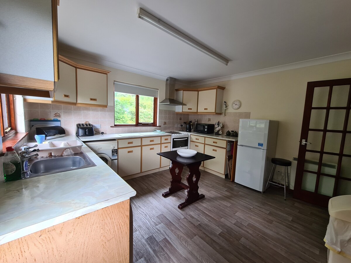 3 minutes from the ferry. You have access to Camard's own private estate of 87.5 acres of pastureland, Oak woodlands & waterfalls! Wild beachs within walking distance through the woods. Breathtaking views over the water to the mountains of Knoydart, which you may enjoy from the lounge or deck. Unwind, & completely digital detox, in one of the U.K,s most awesome, tranquil and beautiful locations. Forest tracks opposite. Please enquire 48 hrs in advance re booking a BBQ dinner if required. Relax