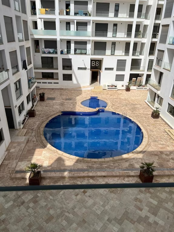 Kényeztesd magad egy pihentető tartózkodással ebben a gyönyörű, légkondicionált apartmanban, amely ideálisan elhelyezkedő, csendes és biztonságos területen található, kevesebb mint 10 percre a strandtól. Üzletek közvetlen közelében lesz: Marjane és Carrefour, számos étterem, edzőterem, gyógyfürdő és hammam is elérhető néhány perc alatt. A negyedik emeleti, lifttel rendelkező apartman akadálytalan kilátást és nagyszerű kényelmet kínál. Élvezd a modern helyet, ahol minden megvan, amire szükséged van a kellemes tartózkodáshoz, és van ott vezeték nélküli internet is