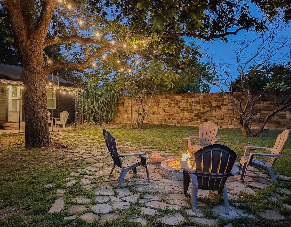 This unique place has a style all its own. Close to Bishop Arts and Downtown our guest house has all the privacy and convenience you need. Thru your private entrance you walk past the waterfall pond, under an arch of tree vines, into a cozy and updated home. Outside at the end of the wraparound porch you’ll find a private fire pit. On the rooftop there’s a 2 person hot tub with incredible views of the city and Dallas National Golf Club.