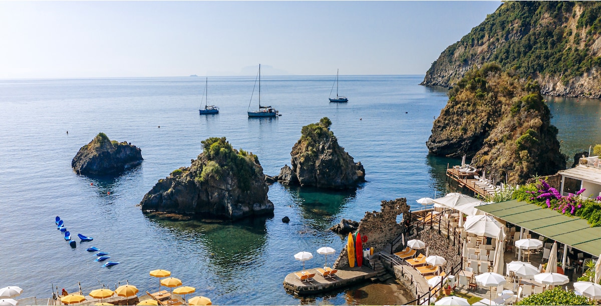 Pompás, egyedi és független házikó a Cartaromana öbölben, a Santa 'anna sziklák között. A ház nagy, minden kényelemmel felszerelt terasszal rendelkezik. A tenger közelében található privát kerthez SZEPTEMBERTŐL MÁJUSIG LEHET hozzáférni. JÚLIUSBAN és AUGUSZTUSBAN a szomszédos strandokon és termálfürdőkben személyre szabott kedvezményekkel lehet hozzáférni a tengerhez