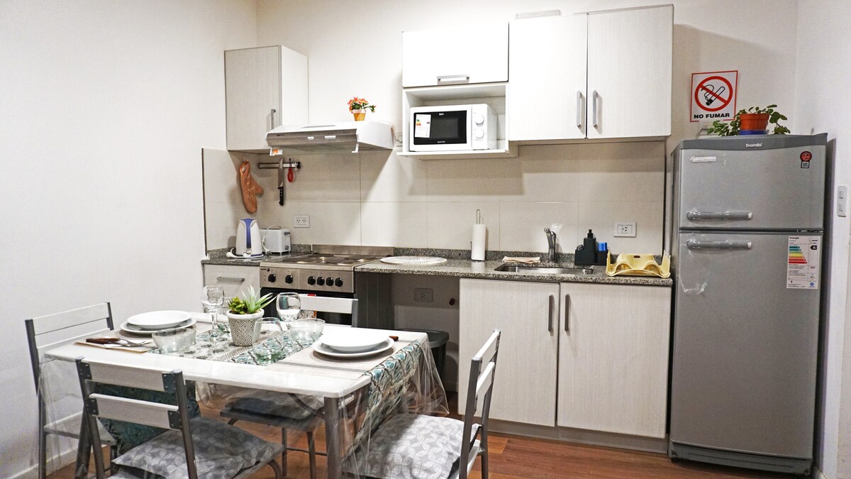 NÉHÁNY LÉPÉSRE✅ A VÁROSKÖZPONTTÓL, AZ ÉTTEREKTŐL ÉS A MINIPIACOKTÓL.✅KÖZPONTI FŰTÉS✅ ÉRKEZÉS 14:00 (RUGALMAS AZ ELÉRHETŐSÉG SZERINT). ✅KÉT TELJESEN✅ FELSZERELT ÁGY, WIFI, NETFLIX.✅ BELSŐ UDVAR. A mi menedékünk a legjobb választás! Élvezd a legjobb technológiát a központi fűtésben, amely a kényelmed érdekében állítható. A japán ramen előtt, a legjobb chilei hot dogok sarkán, két háztömbnyire a piactól. Közel 3 minimarket, legfeljebb 2 háztömbnyire. Két kocsmánk van a közelben (2 és 4 háztömbnyire)
