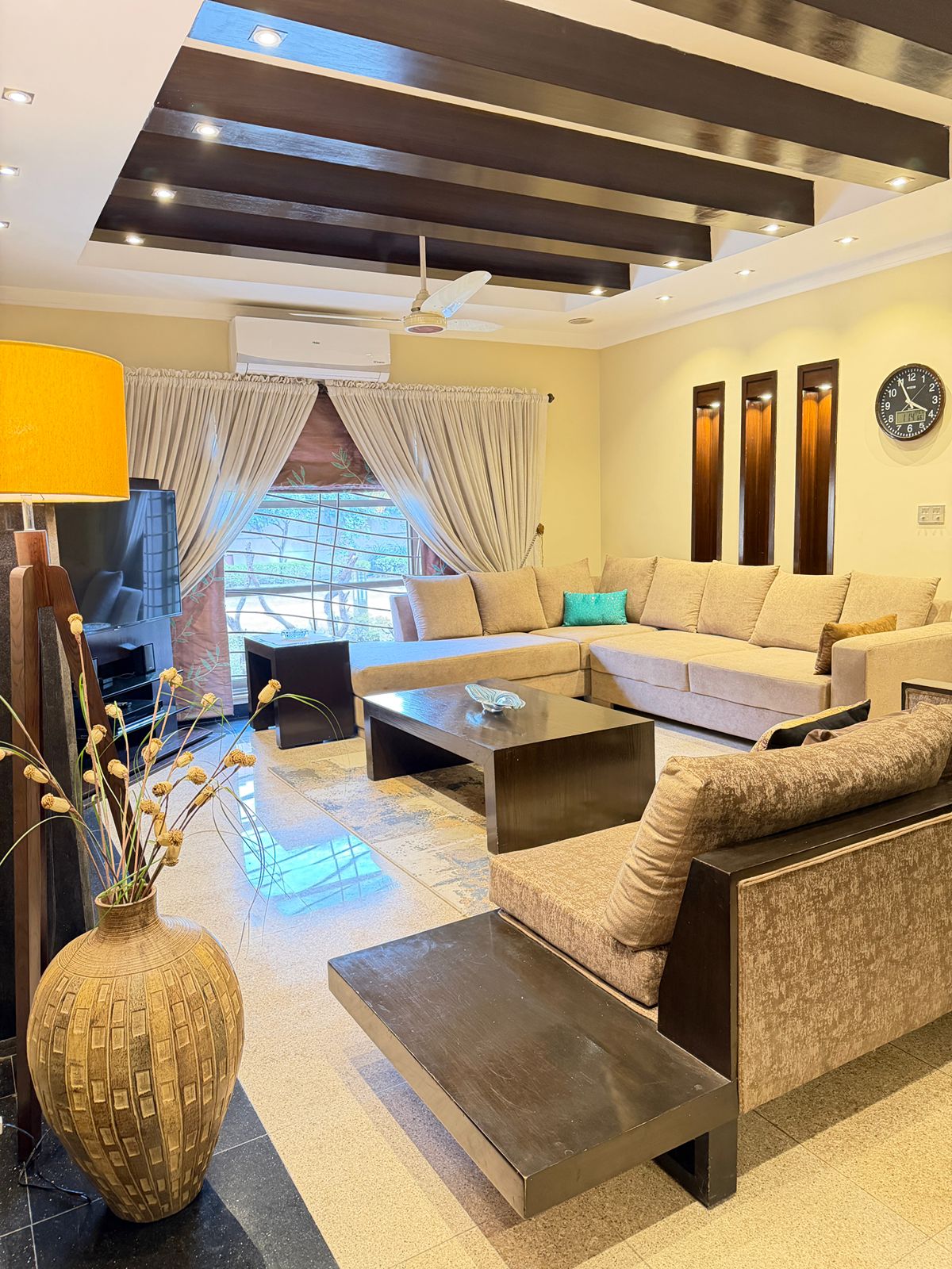 Nincs más kiadó hely, amely felülmúlná ezt a pazar, központi elhelyezkedésű, biztonságos és nyugodt, gyönyörűen berendezett és ízlésesen berendezett, független, 3 hálószobás rezidenciát, amely saját bejárattal és parkolóval rendelkezik családok, üzleti utazók és bárki számára, aki Royal Luxury Home @ Central Location szálláshelyet keres. Szívd magadba ennek a vadonatúj királyi villának a modern és vintage báját. Rendkívül pazar dizájner bútorok, tágas szobák, növényzet, látványos kilátás és munkahely. Nagy, gyönyörű kert összejövetelekhez.