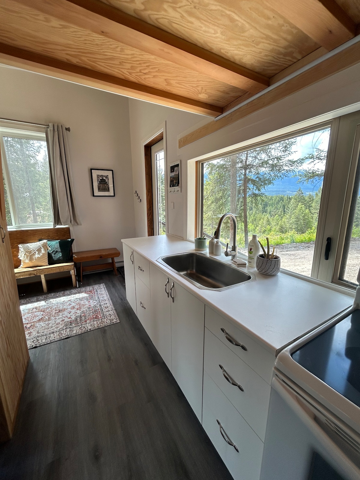 This cozy tiny home sits tucked among the trees on a beautiful organic farm in rural Alberta. Just an hour north of Edmonton — close enough to get here easily, far enough to feel like you've actually left. The home itself is a one-of-a-kind custom built, oversized tiny home. The area offers lots of walking trails right out your front door, easy driving distance to many popular lakes and is just 30 minutes from the growing town of Athabasca where you can experience restaurants and events.