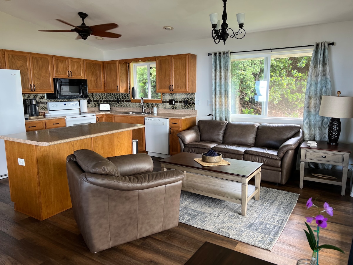 Pihenj az egész családdal ezen a békés szálláshelyen. Ez az otthon 1700 láb tengerszint feletti magasságban található, és mindig hűvös és szellős. Teljes konyha minden kényelmi szolgáltatással, valamint egy étkező és egy gyönyörű lanai. A fő hálószobához saját fürdőszoba tartozik, a második hálószobában pedig egy queen méretű ágy található, az étkezőben/konyhában pedig egy kanapé található. Ez egy új hirdetés, és te lehetsz az egyik első vendége.