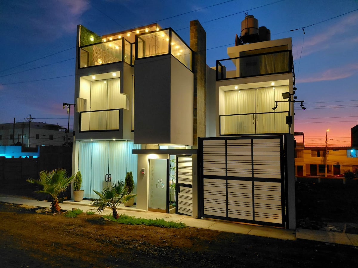 COSTA PALMERAS. Se alquila el 1er piso. ENGLISH SPOKEN Desconectate de tus preocupaciones en este espacio amplio y sereno. Acceso al primer piso, piscina de techo (a coste adicional),BBQ, lavadora, canchas, playa privada. Dependiendo del número de huéspedes se habilitan: 2 cuartos con 4 camas dobles y 2 cuartos con cama matrimonial. Ideal para una familia grande o teletrabajo en un lugar muy agradable. A 10 mins de Matarani, 7 de Mollendo o Mejia.