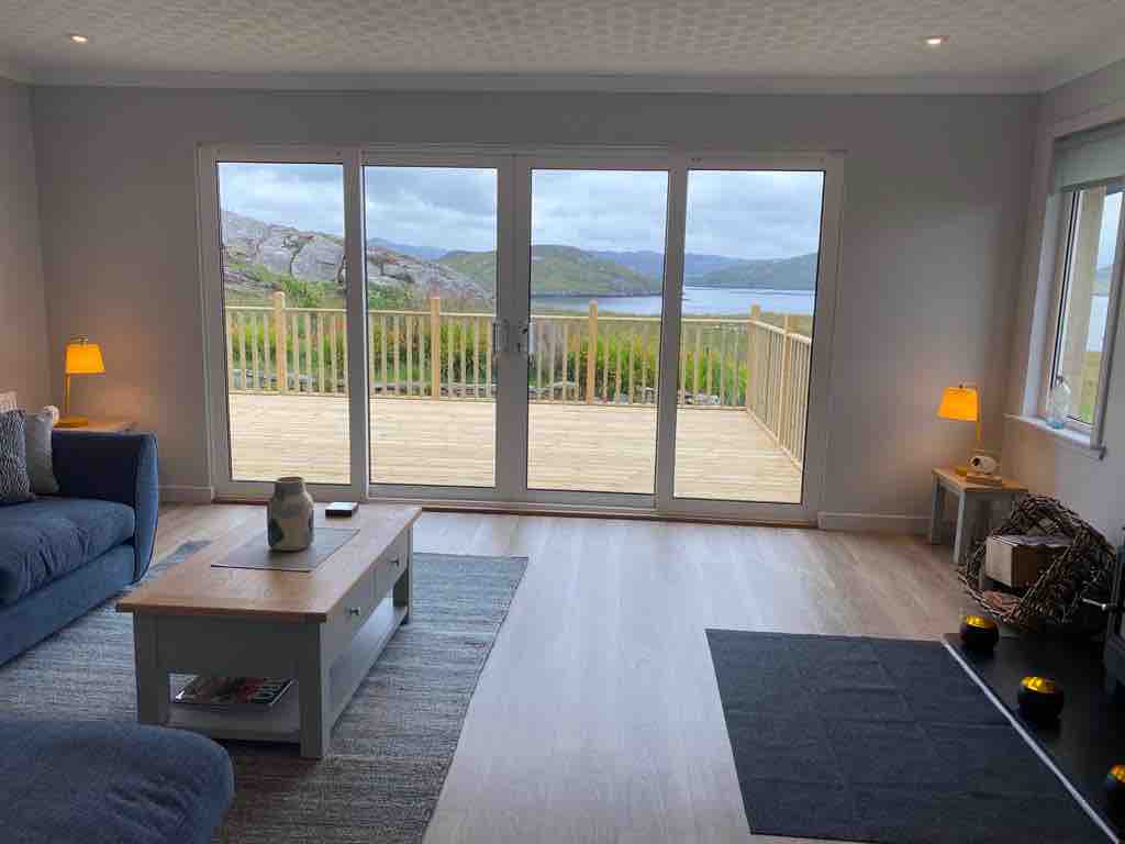 A The Happy Bishop, amelyet a The Times „a végső hebridai búvóhelyként” jellemez, feltűnő, kortárs és energiatakarékos otthon drámai környezetben. Távoli, vad és békés. A nyitott nappali és étkező a ház fókuszterülete, ahonnan lenyűgöző kilátás nyílik, és tolóajtók nyílnak egy fedett erkélyre. A szoba egyik végén található részben árnyékolt platform egy iroda/pihenőhely. A könyveket, játékokat és jógaszőnyegeket a vendégek használhatják. Pihenj és töltődj fel.
