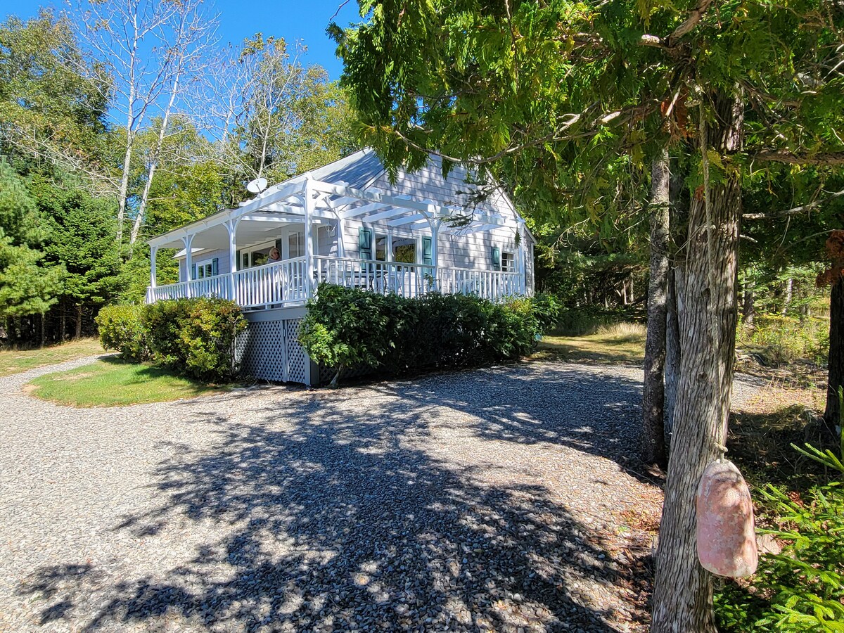 Romantic and luxurious, this 2,000 square foot modern cottage nestled on twelve acres is a favorite of honeymooners and lovers of modern design * 1 hour to Acadia National Park & Bar Harbor; 15 minutes to shopping, hiking, swimming * Stargazing deck * 2 full baths, one with steam shower * Fully equipped kitchen with under-counter fridge/freezer * Two gas fireplaces, one indoors, one on a covered deck * Queen bed with luxurious linens and pillows * WIFI, streaming TV, grill, bar * EV charger