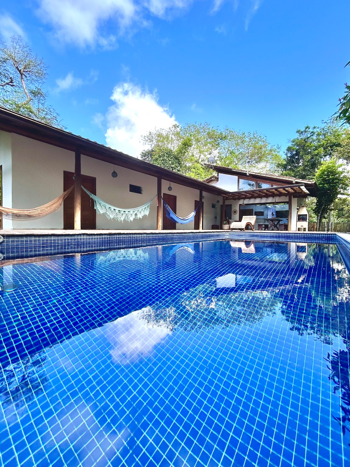 Live Itacaré at Casa Clareia Surf Camp! Kiváló minőségű Eco House (3 lakosztály) akár 7 felnőtt számára, mindössze 300 méterre a Concha strandtól, közel a városközponthoz. King-size lakosztályok légkondicionálóval és Wi-Fi-vel, saját medencével, teljesen felszerelt konyhával, grillezővel és fatüzelésű sütővel. Napi takarítás (kivéve vasárnap) és opcionális szakácsszolgáltatás. Élvezd a naplementét, a szörfözést, a jógát, a madármegfigyelést, a vadvilágot, valamint a tanulás és a vendégszeretet autentikus élményeit. Kényelem és természet tökéletes harmóniában!