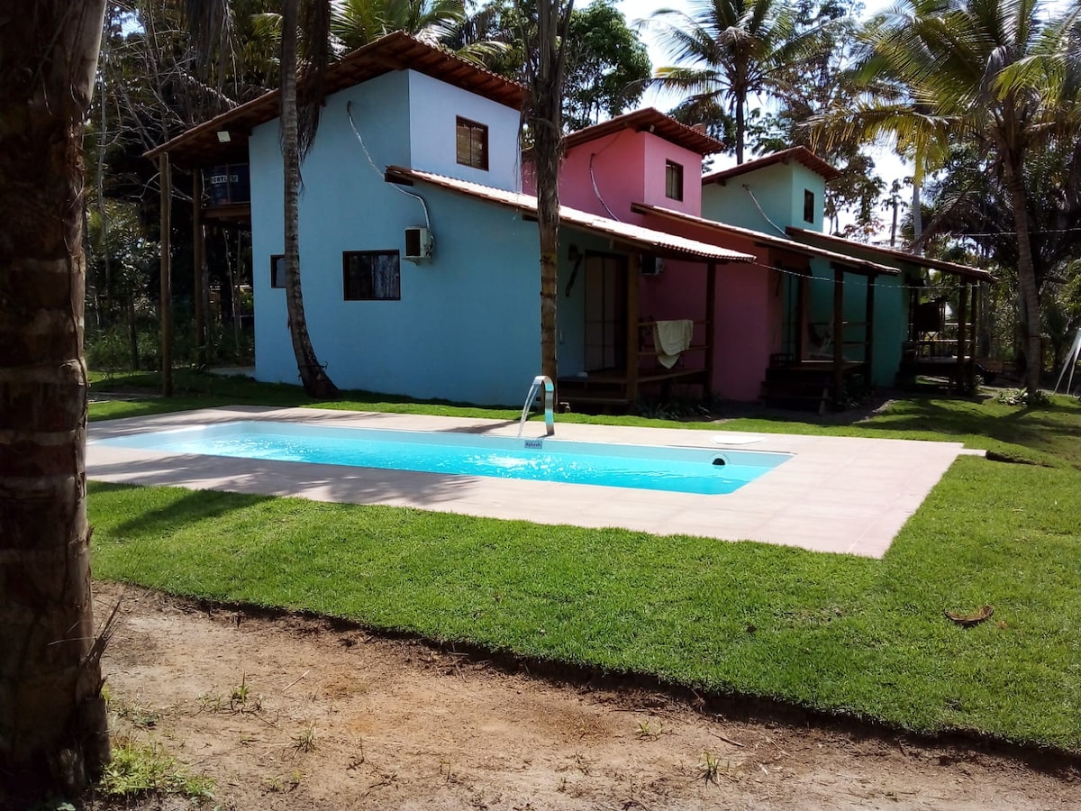 Ez a bájos szálláshely egy tó szélén található, amely romantikus, privát és csendes élményt nyújt, lélegzetelállító kilátással az erdőre. Ideális azok számára, akik kényelmet és kapcsolatot keresnek a természettel. A ház teljesen integrált, pihentető fürdőkáddal, Wi-Fi-vel, ventilátorral, felszerelt konyhával és minibárral rendelkezik. Az Itacarezinho strandtól 1,2 km-re, Engenhocától pedig 2 km-re található, mindkettő vízeséssel rendelkezik. Itacaré vagy Serra Grande távolsága 13 km (25 perc). Éld át az egyedi élményt!