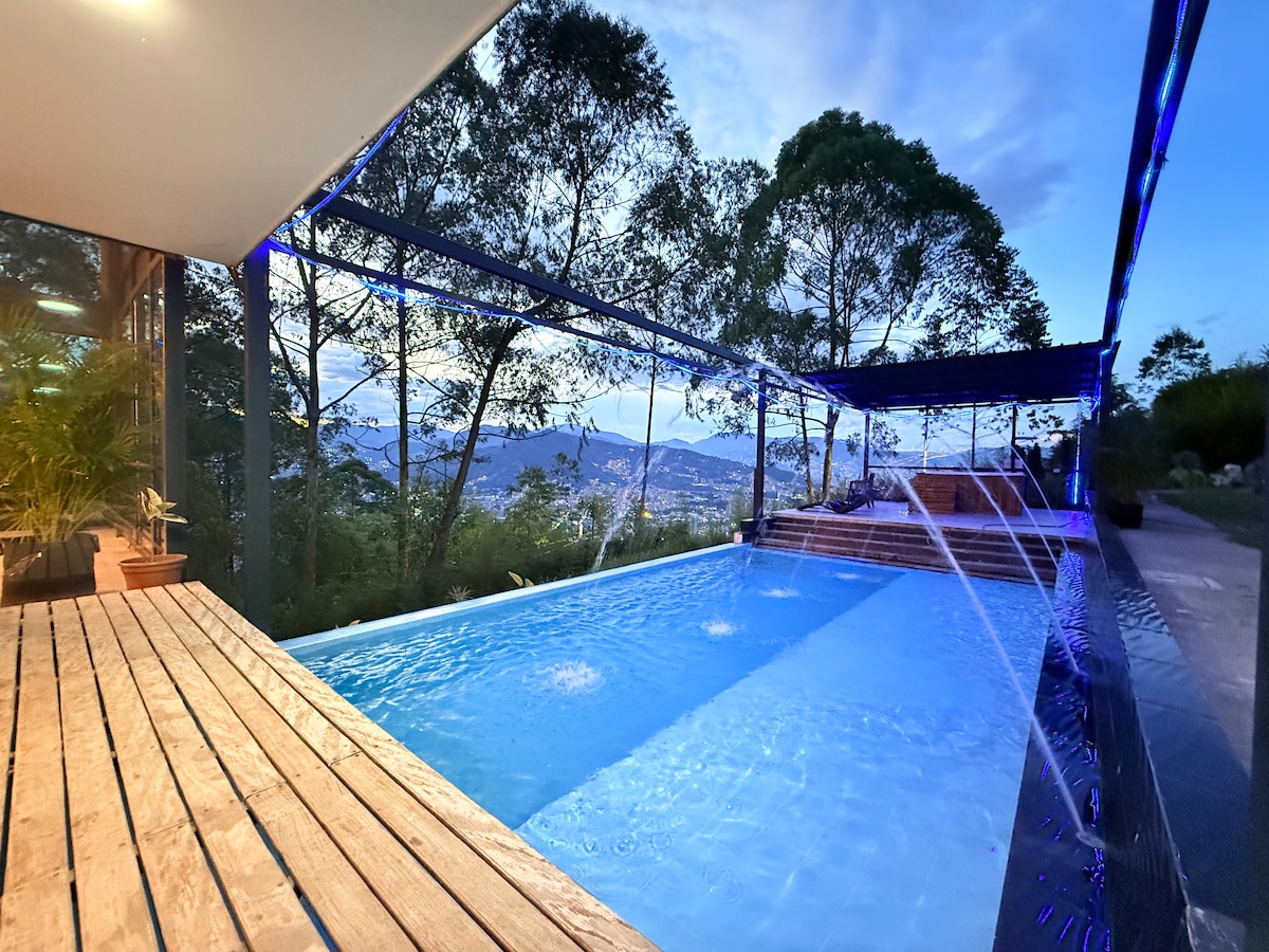 Élvezd az exkluzív élményt Palmasban egy luxusházban, amelyet a természet vesz körül, és amelyből panorámakilátás nyílik Medellínre. Élvezd a fűtött medencét végtelen horizonttal, a térhatású hangzású szabadtéri mozit, a teljesen felszerelt konyhát, a teraszt és a több pihenőhelyet egy magán erdő mellett. A 3 fürdőszobás hálószobával és elegánszerű kialakítással ideális hely azok számára, akik kényelmet, magánszférát és egyedi légkört keresnek, amit megoszthatnak a családdal vagy a barátokkal.