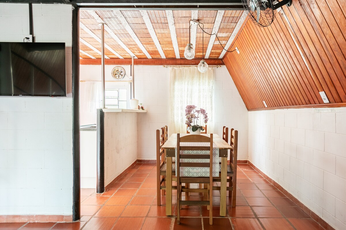 Csendes, nagyon zöld és szórakoztató garantált minden korosztály számára egy társasházban biztonságosan zárva 24 óra, 1: 15 óra São Paulo. Ez a ház a szárazföldön mintegy 3000 M2 kényelmesen befogadására 07 fő rögzített ágy és ajánlatok: medence, grill, pizza sütő, tűzhely, csocsó, füves pályán futball és röplabda, tó hallal, barna teknősök és fekete hattyúk, fukar méhkas, gyerekszoba, gyümölcsös, erkély függőágyakkal, stb. Mindezt az ön jólétére tervezték.