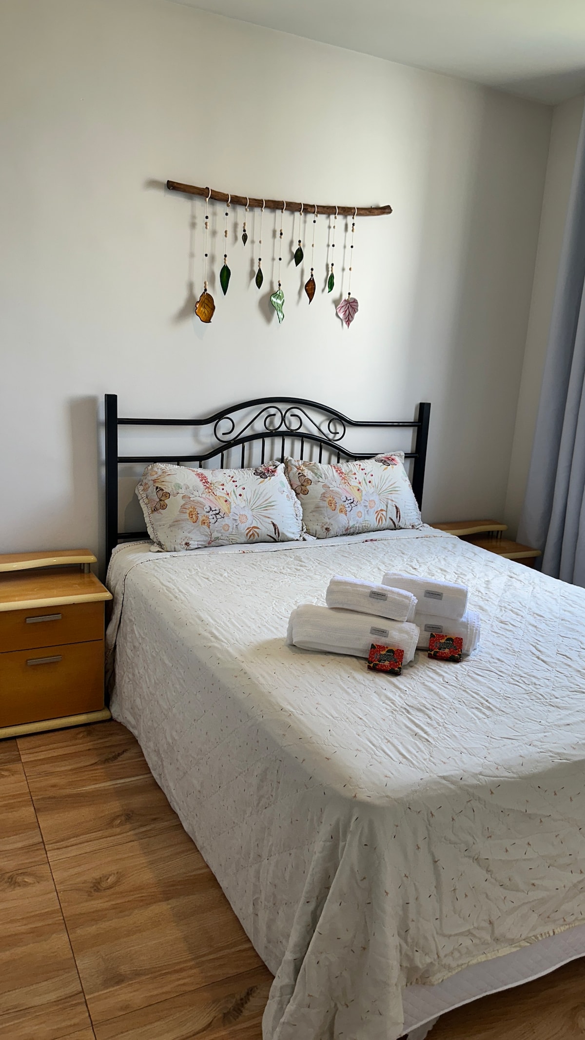 Apartamento com Garagem . 01 quarto para 4 hóspedes com 1 cama de casal e 01 bi-cama de solteiro. Sala com ventilador, TVbox disponibilizando todos os canais. Cozinha com cooktop, micro-ondas, geladeira, cafeteira e utensílios básicos. Banheiro com secador de cabelo. Lavanderia externa. 01 vaga de garagem para carro ou moto.
