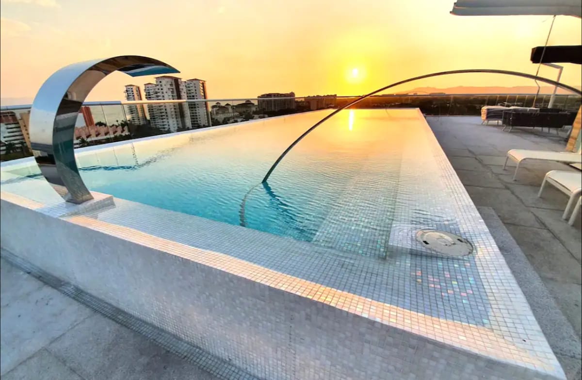 Welcome home to your MODERN 7th FL condo. Your Rooftop infinity pool w/ a BREATH-TAKING VIEW of the sea and cruise ships: simply stunning! Our space offers all the convenient amenities. Rooftop BBQ or gym with a view? You got it! All in a perfect location; only a 12-min walk to the beach, restaurants, bars, groceries, malls, cinema, and hospital. The Malecón, Romantica, and Marina are a quick 10-min drive away! YOUR dream getaway with stunning rooftop views right here in beautiful PV.