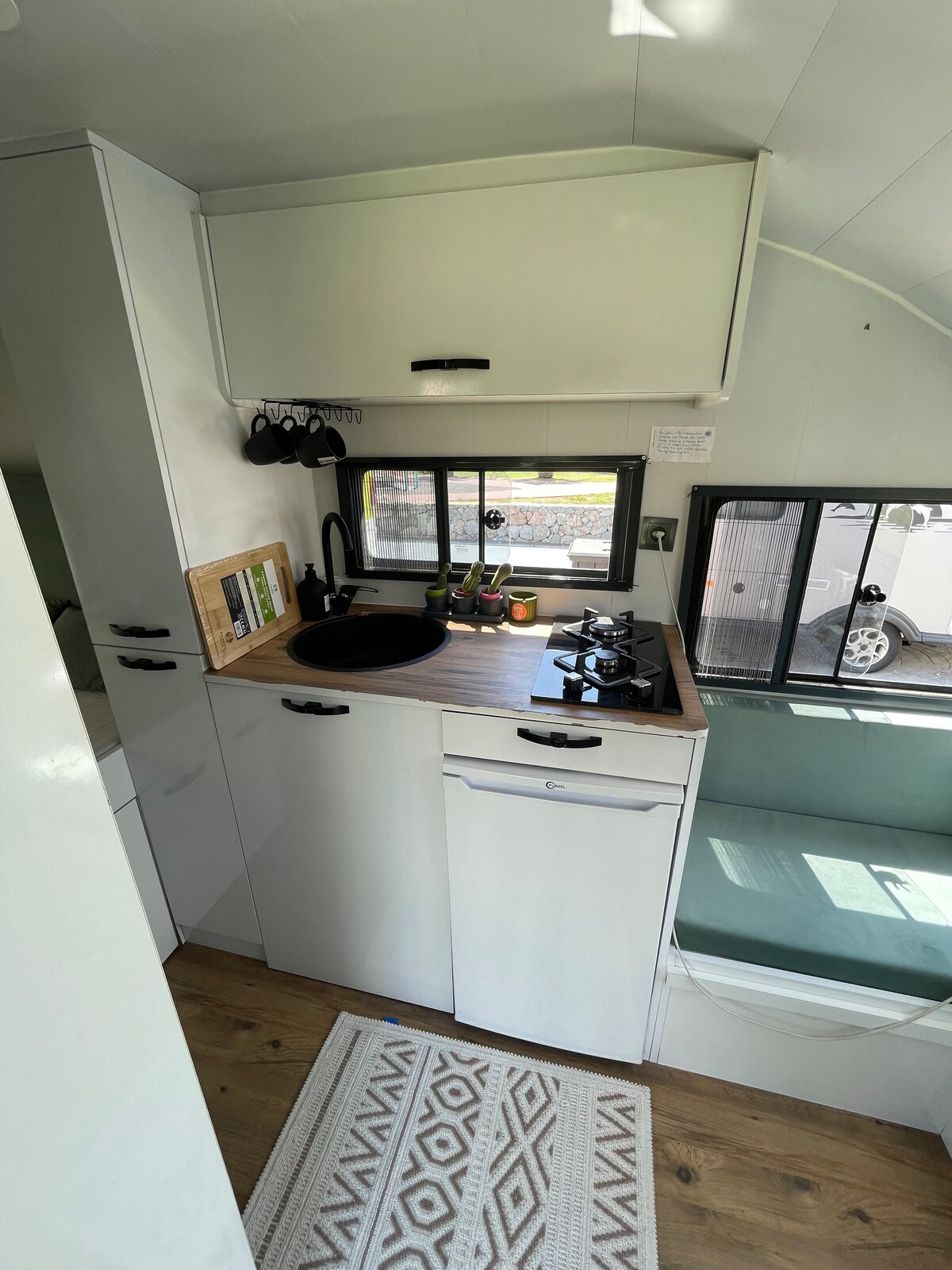 - Koyda park halinde. Büyüleyici güneşin batışıni izlemek için en doğru noktada - WhatAFest için en ideal nokta. Yürüme mesafesinde - Güneş Panelleri ve Akü Vasıtası ile Elektrik Kullanım İmkanı - Su Deposu Vasıtası ile Su Kullanım İmkanı - Soğuk İçecekleriniz için Güçlü Soğutucu Özellikli Buzdolabı - Duş ve tuvalet imkani - Ocak ve gaz mevcuttur. Tencere, tava, tabak, çatal, bıçak yine mevcuttur.
