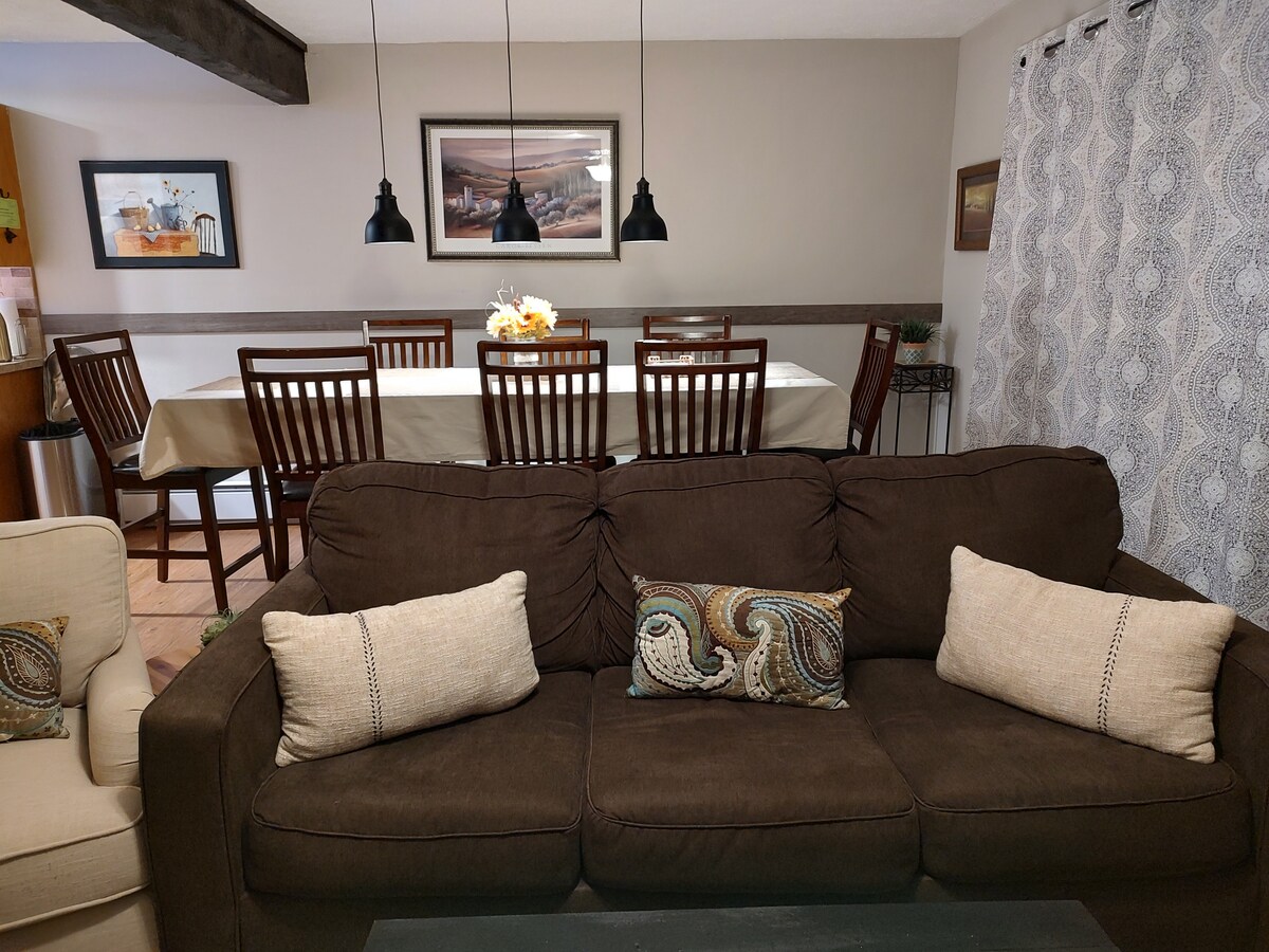 Üdvözlünk a „Medvék barlangjában”. Ez a 2 hálószobás városi otthon tágas nappalival/étkezővel, kandallóval, 6 férőhelyes étkezővel és teljesen felszerelt konyhával rendelkezik. A kültéri teraszon van egy grillsütő, és egy privát teret kínál, amely tele van gyönyörű fákkal tarkított természetes tájjal. Ez a szuper aranyos otthon kényelmesen alszik 7 főnek, és a Jack Frost hegyen található, ahol végigsétálhatsz az ösvényeken közvetlenül a sífelvonóig! A Harmony-tónál található, ahol a téli és nyári szórakozás vár rád a „Bear 's Den” -ben.