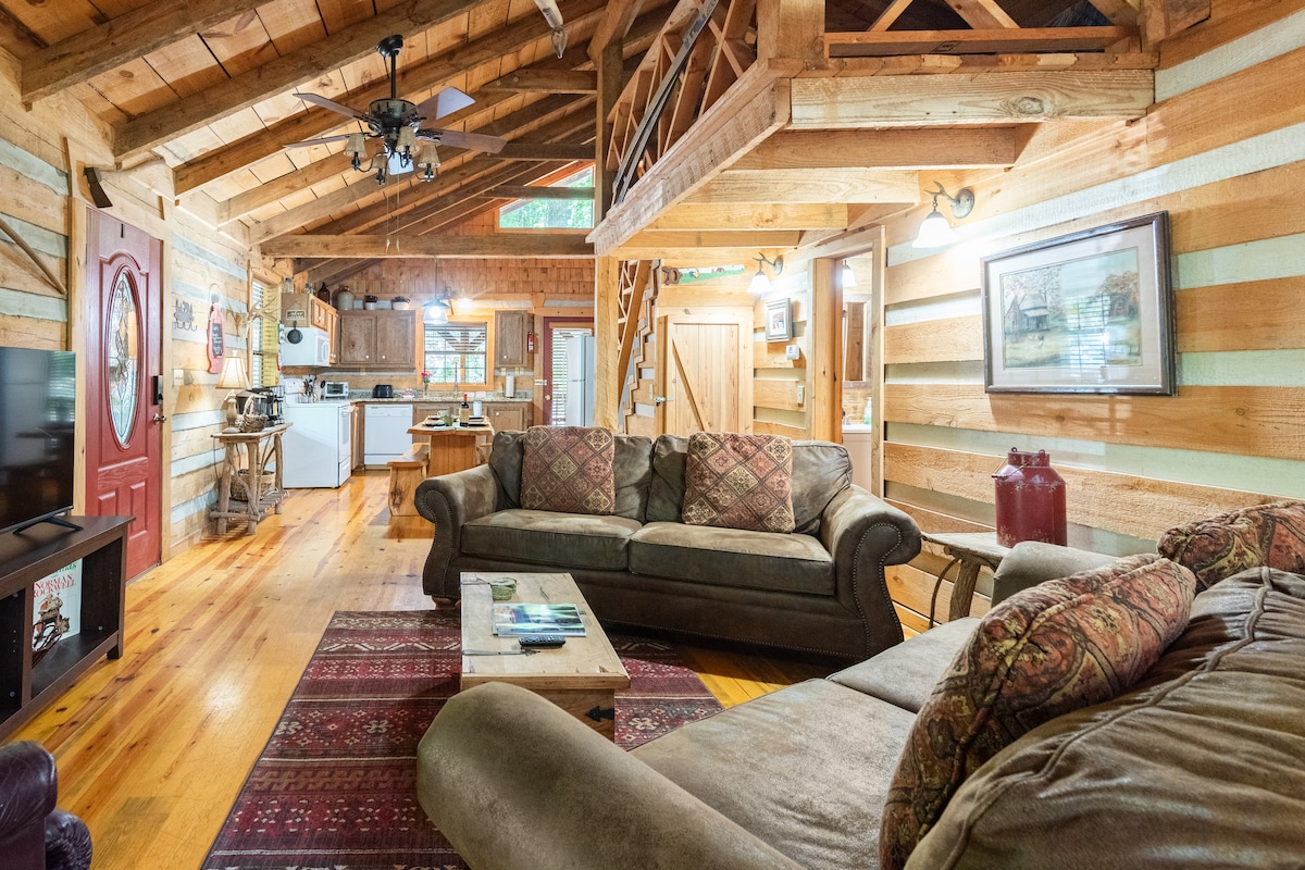 Whether you're celebrating, reconnecting with friends, traveling with family, or simply enjoying extra space as a couple — The Nest offers private King suites and beautiful shared gathering areas. The Nest at Hoot Owl Hollow is a fully renovated 1880s log cabin featuring two Designer King suites and a bunk room, located within walking distance of downtown Mentone. Park once and enjoy privacy, comfort, and the rare experience of staying in a historic log home just steps from downtown Mentone.