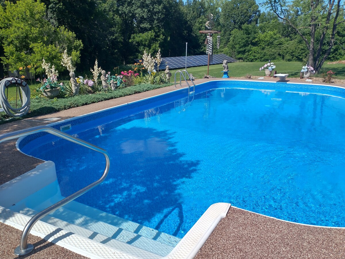 Teljes méretű konyha. Őrült sós vizes medencében (szezonban), pezsgőfürdő kívül. Tűzrakóhely, fa és pörkölőpálcikák berendezve. Murphy ágy a nappaliban. Rengeteg szabadtéri ülőhely a teraszon asztalokkal. Játékok és kártyák a hálószobai szekrényben. Feltöltött konyha fűszerekkel - turmixgép - azonnali pot-crock pot-toaster. 30 percre a Downtown KC-től és 20 percre a Kauffman stadiontól. Csodálatos családi hely, nem egy bulizós hely.