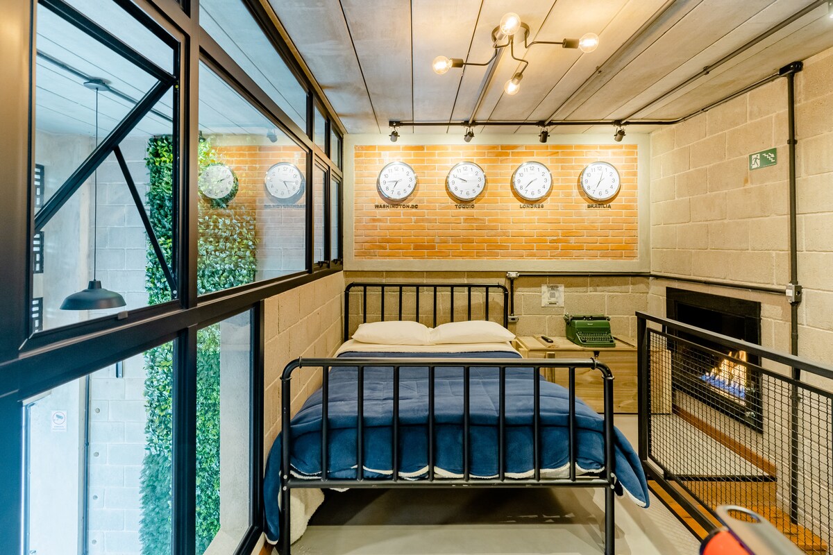 Fedezd fel a tökéletes egyensúlyt a nyugalom és a kényelem között! Szálljon meg egy hangulatos, 27 m²-es stúdióban, rusztikus ipari dizájnnal, egyedi részletekkel, mint például egy graffiti panel közvetett világítással és a Parque Capivari történelmi padlójával, valamint a Parque Bosque do Silêncio, a Morro do Elefante és még a Capivari felvonó 180°-os kinézetével. Mindezt egy előkelő és visszafogott környéken, amelyet buja természet vesz körül, de mindössze 5 percre van a turisztikai központtól.