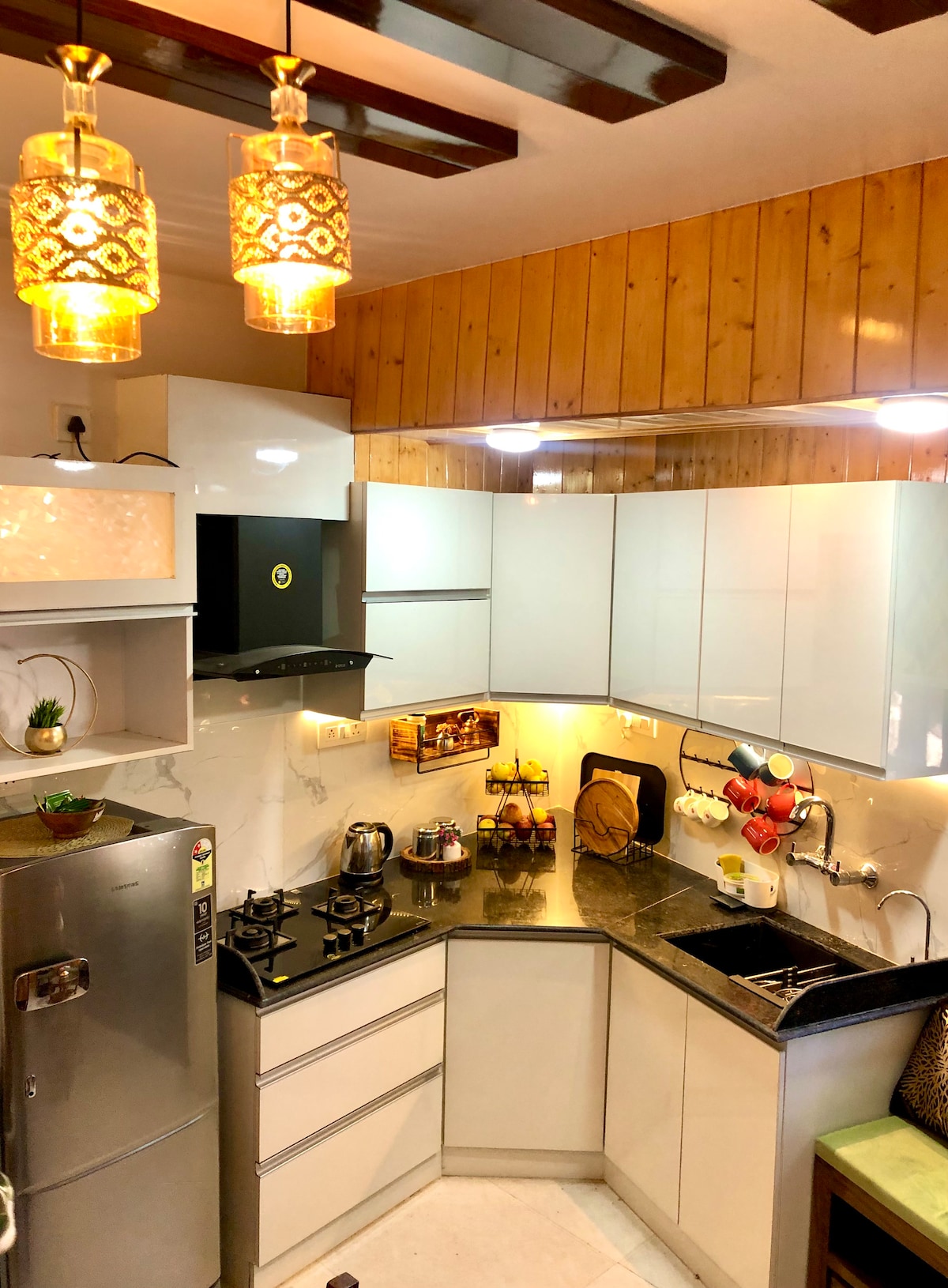 Govt Approved Stylish and Modern Apartment 3 Bedrooms, 2 Bathrooms and Living Room with open Kitchen offers stunning Shimla view. Conveniently located in a green area 15 min walk to Mall Road and 10 min to Jakhoo Temple. Newly Built Ultra Luxury Drive in with Parking & Lift Centrally Heated Air-conditioners Bed Warmers Customised Furniture High Speed Internet, HD SmartTV, Netflix Kitchen with Refrigerator, Hood, Kettle, RO Filter, Induction, Cooking Gas Bosch Washing Machine & Dryer