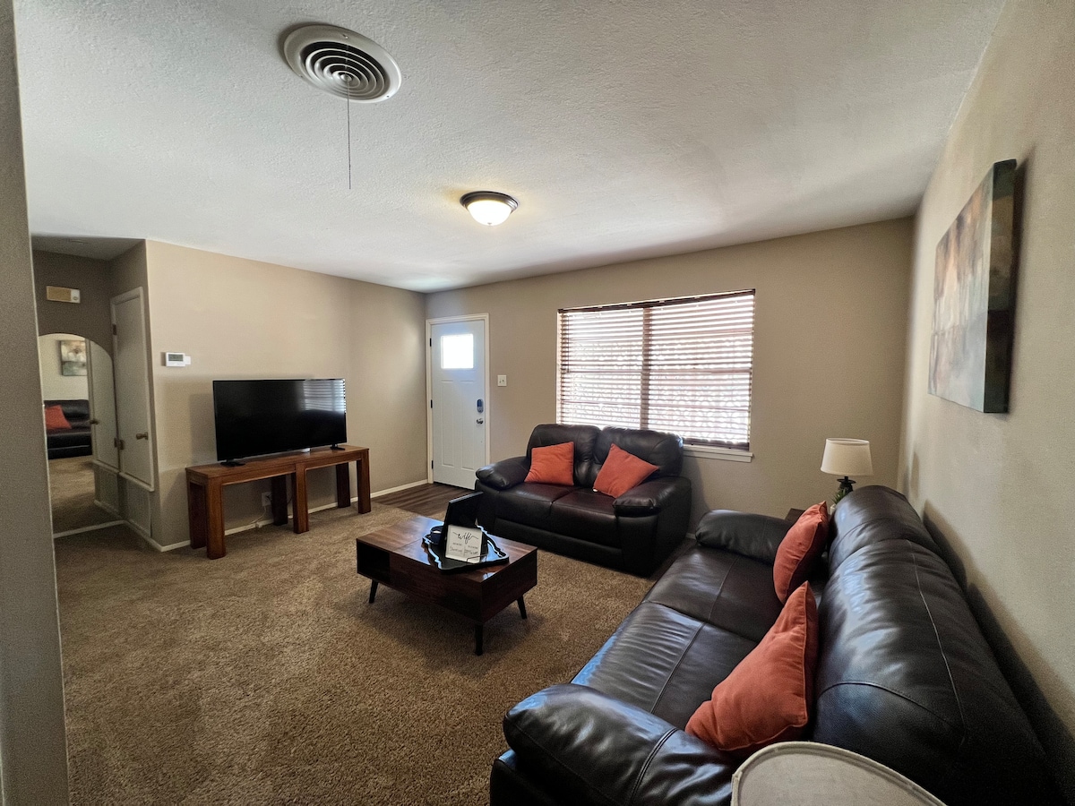 A Sweet Escape-et rengeteg szobával és teljes hozzáféréssel terveztük a teljesen újabb, bútorozott otthonunkhoz, beleértve a kényelmes alvóhelyeket (King in Master with TV), a tágas nappalit és a teljesen felszerelt konyhát tágas étkezővel. Mosógép és szárítógép, valamint mosószer, valamint kocsifelhajtó és garázsparkoló is rendelkezésre áll (kisebb autók számára). Intelligens TV SlingTV-vel és Wi-Fi-vel. Éttermek és vásárlás közelében található. (Ez a hely háziállatbarát, legfeljebb 2 kutya számára.)
