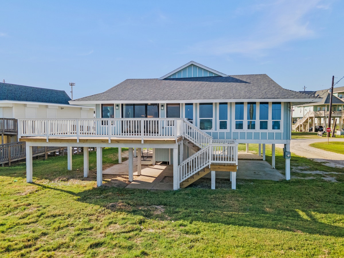 Pihenj és érezd jól magad az egész családdal ebben a békés, 2 ágyas, egyfürdőszobás tengerparti házban. A nagy, teljesen elkerített udvar biztonságos helyet biztosít a gyerekeknek a játékhoz, valamint helyet biztosít a kistestű kutyáknak. Tűzrakóhelye is van, ahol jól érezheted magad a családoddal. Az otthonban hat ember kényelmesen elfér, és egy nagy méretű felső terasszal rendelkezik, amely tökéletes a gyönyörű napfelkelte megfigyeléséhez vagy az általad előnyben részesített ital elfogyasztásához, miközben este a hullámokat hallod. Mindössze 15 percre Galveston összes látnivalójától