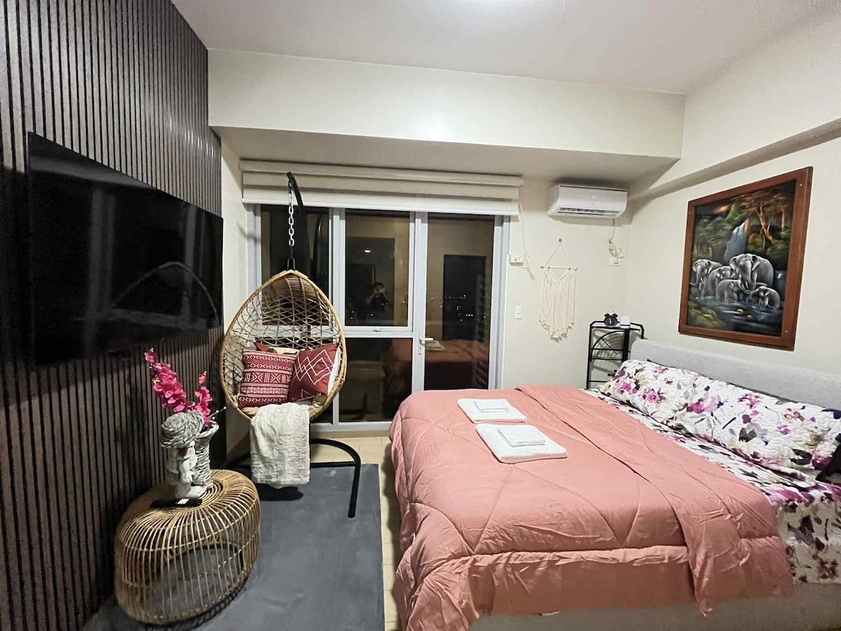 A helyünk központi elhelyezkedésű, és sétatávolságra található az Atria Park Districk, a Qualimed Hospital, az Ateneo, a Seda Hotel és az S&R Shopping. Néhány percre van a Festive Walktól, az SM Citytől, az SM Citytől, a Plazuelától és a Smallville-től. A hálószobában saját vécé/fürdőszoba található. A második vécé/fürdő a nappaliban található. A hely wifivel, mosógéppel + szárítógéppel, indukciós főzőlappal, sütővel/kenyérpirítóval, mikrohullámú sütővel, vízforralóval, 55 hüvelykes televízióval és fűtött zuhanyzóval rendelkezik.