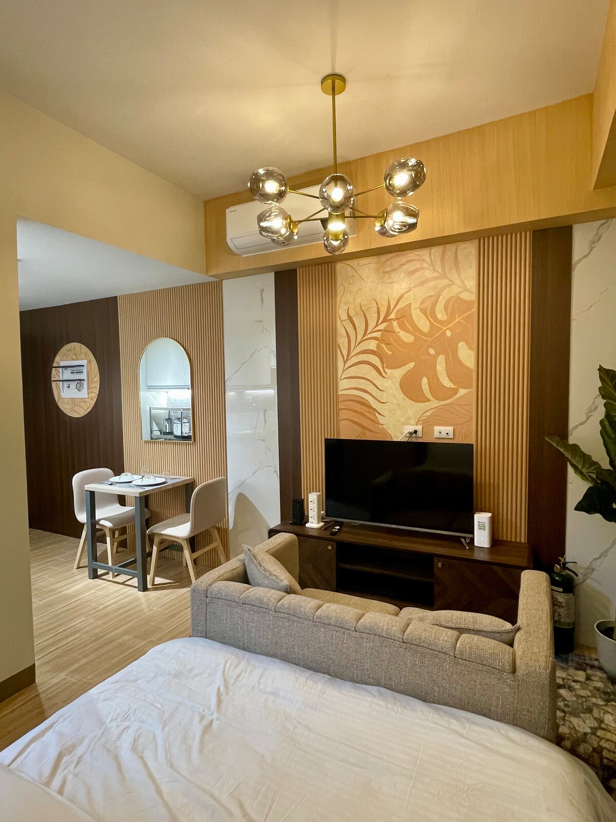 Üdv a Yugen Loft 15-ben – egy békés, 31,16 négyzetméteres menedékhelyen a 15. emeleten, amelyet a nyugalom, az egyensúly és az egyszerűség japán elvei szerint alakítottunk ki. A modern, organikus textúrákkal és meleg, földszínekkel kialakított szálláshely békés menedéket kínál a város szívében. Akár üzleti ügyben, akár szabadidős célból, akár csendes kikapcsolódásra érkezik Iloilóba, ezt a magas színvonalú menedéket a lassú reggelekre, a pihentető éjszakákra és a kettő közötti tartalmas pillanatokra tervezték – egy nyugodt hely, ahol feltöltődhet, és otthon érezheti magát.