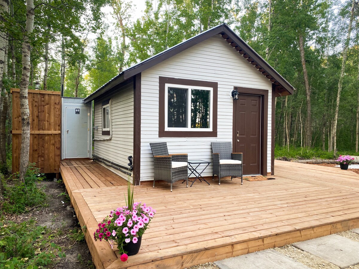 Egyedi 14x16 láb hangulatos privát víkendház az erdőben. 2 emeletes ágy/királynő a tetőtérben. Minőségi matrac/ágynemű. Alcove konyha. Saját kő étkező terasz és vízesés. ÚJ! Privát fürdőház! Új! Lakás méretű hűtőszekrény/fagyasztó! Kőút a „Tinkletorium” tisztításához. Mins. walk to Blindman River, pezsgőfürdő, kajakozás, titkos hinta. Szívd magadba az elszigeteltséget és a nyugalmat, aludj egy csillagos, sötét ég alatt. 10 percre a Red Deer/Sylvan Lake-től. Az Airbnb bulikra vonatkozó globális tilalma szerint a bulik nem engedélyezettek a Woodsy Cabinban.