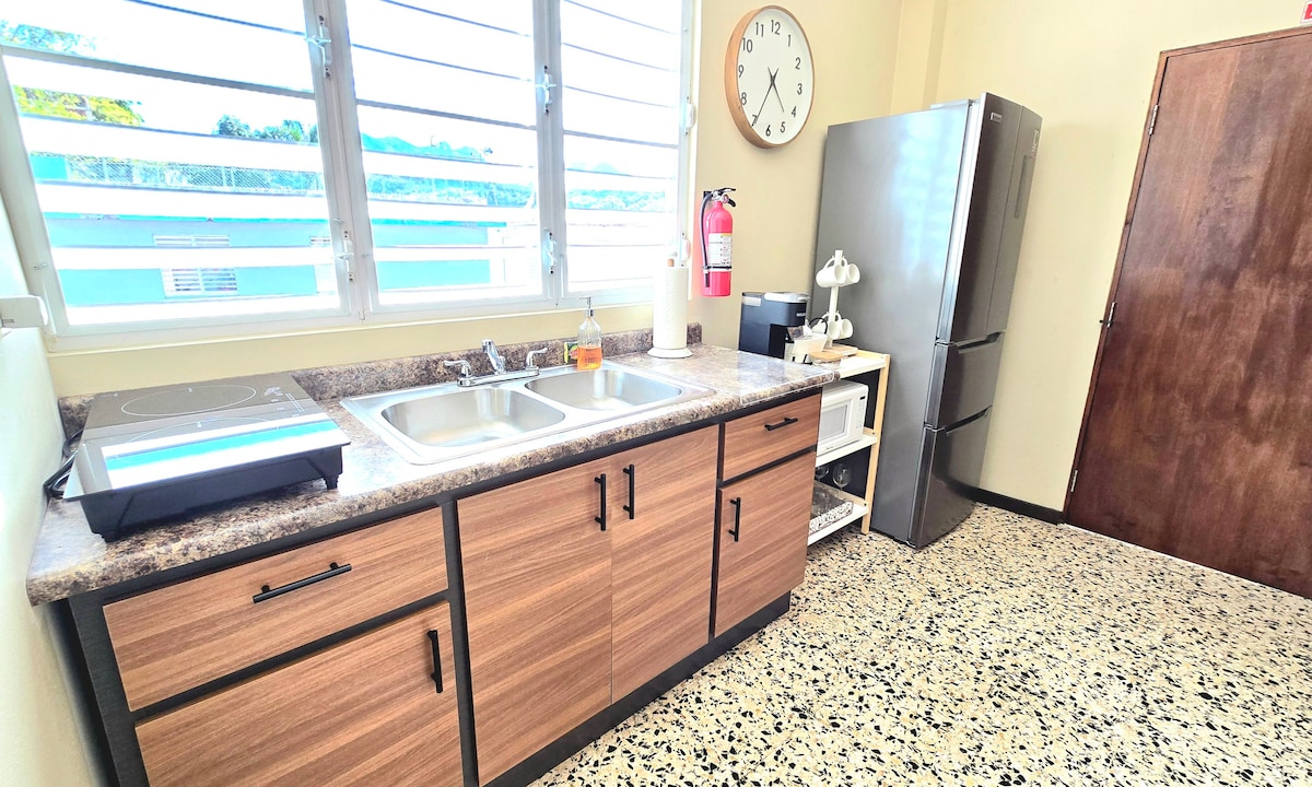 - Live a peaceful experience and embrace the local culture with the soothing sound of the coqui and the Puerto Rican rooster. - Fully-equipped second floor apartment located above the Federal Post Office. - Enjoy your own private entrance in a tranquil and secure environment, with A/C, TV, Netflix, and Wi-Fi included. - Located just steps away from a variety of restaurants, bakeries, stores, pharmacies, hospitals, gas stations, fast food restaurants, and local bars.