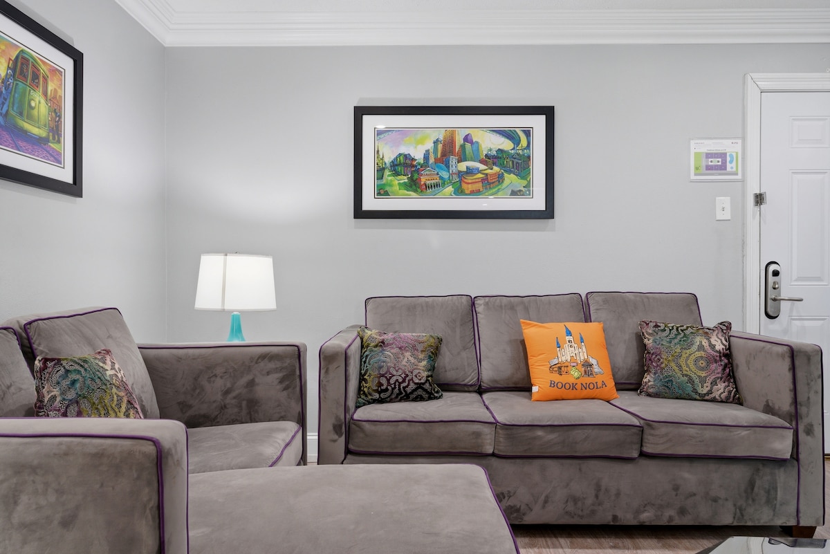 A French Quarter és Marigny kereszteződésében található, elegáns, két hálószobás szálláshely INGYENES parkolást kínál, és a város legikonikusabb helyei könnyen megközelíthetők innen. Élvezd a tágas belső tereket, a magas mennyezetet és a stílusos dekorációt, amely New Orleans klasszikus báját ötvözi a modern kényelemmel. Lépj ki a Frenchmen Street híres jazzklubjaiba, az élő zenei programokra és az éttermekbe. Tökéletes azoknak az utazóknak, akik a French Quarter energiájától néhány lépésre szeretnének megszállni.