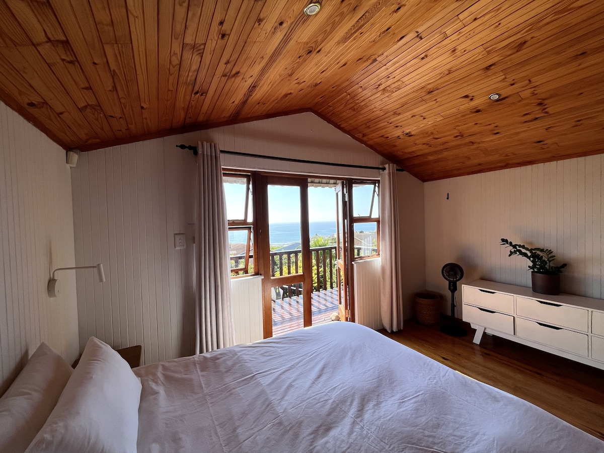 Soak up the tranquility of my newly built warm wooden home with sea views from every corner. The main house is delightfully elevated and accessed via a wooden walkway there are no stairs. There is an Inverted so you not effected by loadshedding. A lovely indoor fireplace for those chilly nights. There is a self contained cottage on premises with private access that is let permanently.