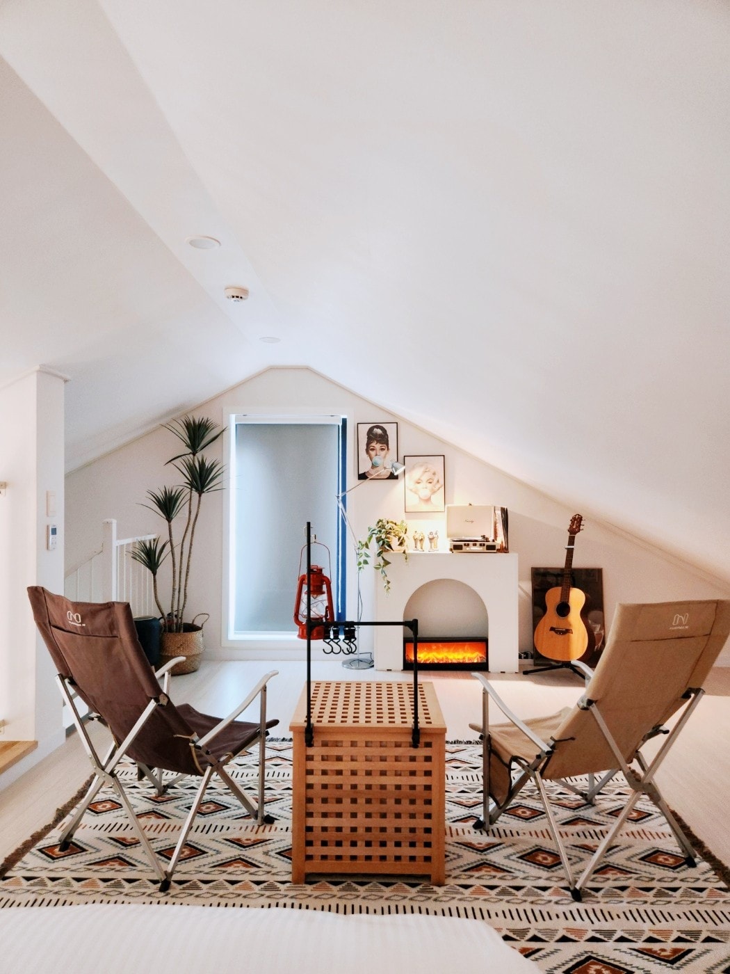 따뜻한 쉼과 한적한 여유가 있는 제주감성독채 / 벽난로와 다락공간 / 오롯이 한 팀