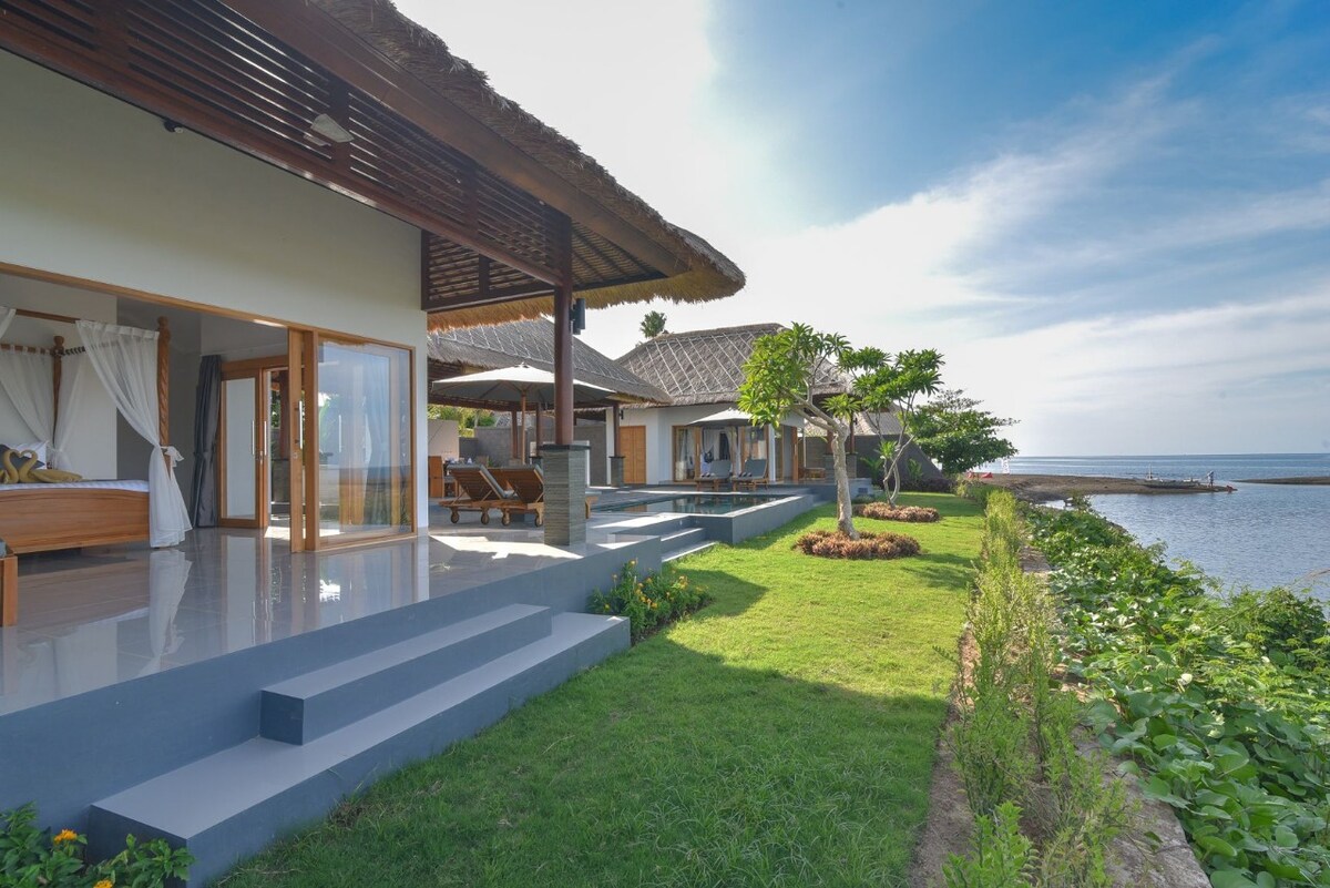Ez a villa egy gyönyörű villabirtok, amelyet rizsföldek és közvetlen óceánpart vesz körül. Alkalmas hely nagyobb családok vagy csoportok számára, akik a természet közelében keresnek szállást. Ez a luxusvilla egy nagy medencével rendelkező fő villából és 4 vendégházból áll, amelyek közül kettő saját medencével rendelkezik, és amelyek mindegyike egy 2600 négyzetméteres telken található. Kiváló hely, ahol élvezheted a nyaralást a családoddal és a barátaiddal. Az egyes párokat és a kis csoportokat is nagyon szívesen látjuk.