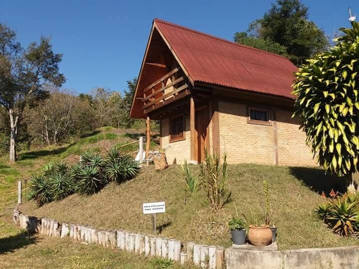 Chalé com mezanino e varandas, acabamento rustico, confortável, vistas de cafezais, montanhas, pedras, águas cristalinas, trilhas na mata para 3 cachoeiras. Visitas constantes de pássaros e pequenos animais silvestres. Localizado em área rural, próximo a um bairro rural, a 10 km centro da cidade. Tranquilidade garantida.