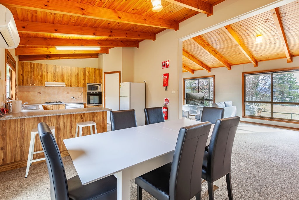 Escape to our luxurious Snowy Mountains retreat, blending designer style with cozy comfort. Relax by the log burner on cold nights with underfloor heating for toasty toes, or soak up summer evenings on the spacious sun deck. Amenities include a chef's kitchen, 65" Smart TV, outdoor bio-ethanol firepit, king beds and a garage for all your gear. Perfect for unwinding after your alpine adventures, The Lodge is located just 35 mins from Thredbo and Perisher ski resorts and 7 mins from Jindabyne.